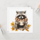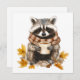 O outono deixa uma guaxinim confortável com uma xícara de café