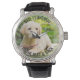 Relógio fotográfico personalizado - perfeito para um pai de golfe do cão - mas você é bem-vindo para personalizar o texto como quiser. Carregue sua foto favorita e ela será exibida com uma cobertura de borda semiopaca, como base para a tipografia. A redação atual diz "Pai, eu te amo para o rancor e para trás", que você pode facilmente editar para se adequar.
