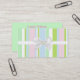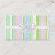 Este cartão de visita bonito é perfeito para todo o negócio ou ocupação. Caracteriza as listras do verde, do rosa, do azul, e as brancas na parte dianteira. Uma fita e um arco funcionados através do centro. Um gráfico de um opal senta-se no centro do arco. A parte traseira é um verde contínuo. Todo o texto é customizável.
