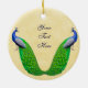 Personalize este ornamento tomado partido dobro em ambos os lados com seus próprios nomes, datas e fraseio! Apenas bata "personalizam-no" botão a seguir escolhem-no do menu dropdown. Design original das belas artes dos pavões e das penas por Carolyn McFann do estúdio de ronrom de dois gatos.