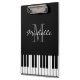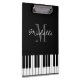 O piano de cauda fecha a prancheta do monograma para o pianista ou o professor de música. Design personalizado do conselho de grampo com teclado preto e branco e tipografia elegante do roteiro. Fontes e acessórios do negócio para o instrutor, o músico, o jogador de piano, o pianoman, os amigos, a família, os miúdos, a mamã, o pai, o treinador, o artista, o produtor etc. acessível para notas, ideias musicais do presente de aniversário das folhas de música etc. para ele e ela. O dobro tomou partido design do nome ou das citações feitas sob encomenda. Presentes Monogrammed para o trabalho, o trabalho, a prática etc.