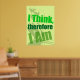 Um impressão do "Pensador" de Rodin com a famosa citação de Descarte em verde