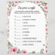 Jogo de chá de fraldas "O preço está certo" Adivinha os preços desses bens essenciais. Quem mais se aproxima do valor real ganha. A folha de papel Jogo do Chá de fraldas apresenta rosas de aquarela adoráveis.