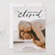 Compartilhe da notícia fantástica de seu elopement do destino com este cartão que está toda pronto para ir! Mude suas fotos a seu a maioria de favorito de seu elopement, actualize os nomes, data, lugar, e inclua uma mensagem a seus família e amigos. Este cartão do anúncio caracteriza um título escrito à mão da caligrafia "eloped" no preto (o branco está igualmente disponível em uma outra lista) e adiciona pouca elegância a sua surpresa simples contudo corajosa da indicação no correio!