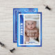 Pense fora da caixa do batedor quando for hora de anunciar o nascimento do seu bebê, com este anúncio cômico no estilo de um cartão de beisebol. Adicione fotos do seu próprio bebê e edite o texto do cartão, quando necessário. O sobrenome do bebê também dobra como seu nome de equipe e é exibido em uma fonte branca de esportes no fundo do tecido de camisa azul. Além do peso e comprimento do bebê, há também uma área para adicionar o ano de sua elegibilidade preliminar. Onde a "biografia do jogador" normalmente estaria é o anúncio de nascimento, escrito com trocadilhos de beisebol. Você pode usar o texto padrão e simplesmente mudar os nomes para o que é relevante no seu caso ou você pode reescrevê-lo completamente em suas próprias palavras.