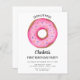 Está planejando a primeira festa de aniversário de uma garota? Esta Rosquinha de orçamento fofo O Primeiro Convite de aniversário da Miss Rapariga é decorado com uma rosquinha cor-de-água rosa e diz "Miss Rosquinha". Facilmente personalizável. Original Watercolor © Michele Davies.