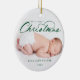 Enfeites de natal celebrando o primeiro Natal de Bebê com carta verde