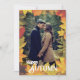 Mande sua esposa, marido e amigos suas saudações de outono com este cartão de Feriado personalizável. Apresenta um quadro colorido de folhas de outono. Personalize adicionando seus detalhes na frente e na parte traseira da placa.