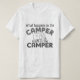 Campos para homens. Camping divertido dizendo em camisas para adultos. O que acontece no camper, fica no camper dizendo em muitas camisas para homens e mulheres. Se você ama acampar em um trailer de viagem, você vai adorar essas camisas divertidas.