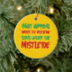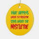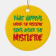 Engraçado o que acontece sob o visco, permanece sob o ornamento do visco com parte traseira do nome de família sobre.