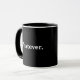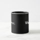 Uma caneca com o texto simples "o que quer que" no branco em um fundo preto. Sinta livre mudar a pia batismal e as cores.