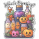 Este bonitinho adesivo de Halloween tem ingredientes pocionais bonitos e as palavras "O que é a Criação?" por cima deles. O texto pode ser personalizado se você preferir que ele diga outra coisa. Este adesivo pode ser usado como um "deleite", um adesivo de recompensa, ou até para decorar sua garrafa de água, porque é à prova d'água.