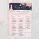 Um chá de panela de jardim floral elegante, na moda e moderno, que está no seu jogo de chá de panela. O design apresenta o nosso vestido de noiva branco, elegante e moderno, branco e pálido, cor-de-rosa, pintado à mão, com um jardim botânico de rosas e flores florescentes. O vestido floral está pendurado em um cabide de ouro falso. Os detalhes do local de flores suaves e as colações espumantes no vestido de noiva criam um belo, sofisticado e luxuoso olhar. Uma bela tipografia escrita à mão com estilo de escrita "Bridal" em ouro. A paleta de cores azul-marinho, cor-de-rosa-pincelado e azul-escura cria uma aparência de tendência, chique e estilo vintage. Os rosas florais de aquarelas enquadram-se no topo. O verso apresenta um fundo pálido pincelado, pálido e minimalista, com um padrão cardíaco dourado que complementa maravilhosamente o trabalho de arte frontal. Arte original desenhada à mão pela Moodthology.