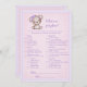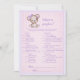 Urso bebê marrom e roxo adorável para o chá de fraldas de uma menina. O que há no seu jogo de chá de fraldas telefônico? Cobertura rosa e roxa com borda roxa e pontilhada para fundo. Modelos fornecidas atrás.