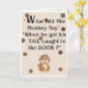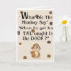 "O que o macaco disse," Quando ele pegou a cauda na porta?" Não vai demorar. Design de cartão de saudação humorístico 5x7 só para você.