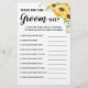 O que o noivo disse cartão de jogo de chá de panel