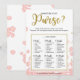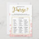 Este "O Que Você Tem na Bolsa" floral moderno apresenta um fundo floral rosa com respingos de glitter dourado. O texto é escrito em uma mistura de uma fonte de caligrafia divertida e uma fonte sans moderna, este cartão "O Que Você Tem na Bolsa" é personalizado com o nome da Noiva e a data do Jantar de Noiva.