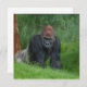 Nesta imagem empolgante, um poderoso gorila prateado fica em relva verde-luxuosa, seu olhar fixado à frente com uma árvore solitária ao fundo.