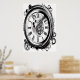 Um relógio mecânico preto e branco detalhado em um estilo inspirado em steampunk com o número romano nele. Esta é uma arte gerada por IA.
