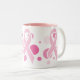 O rosa pontilha a caneca de café