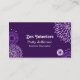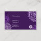 Cartão de visita bonito feito em uma cor roxa, com os gráficos das flores no branco e as máscaras do roxo. O texto no branco é inteiramente customizável ler o que você quer. Personalize o texto na parte dianteira e na parte traseira para um cartão impressionante que faça uma grande primeira impressão.