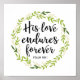 Elegante Design da Tipografia do Escovo com coroa desenhada à mão, ganha-se louros verdes e bronzeada com palavras da bela escritura no Salmo 118:1, "Seu Amor resiste para sempre."