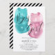 Este chic e moderno "menino ou menina?" gênero revelador apresenta um fundo branco com um par de ursos cor-de-rosa e azuis. O verso apresenta um fundo branco com faixas diagonais pretas. Personalize-o para as suas necessidades. Você pode encontrar produtos correspondentes na minha loja.