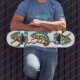 Mostre seu amor do herp com este skate colorido do camaleão da pantera.
