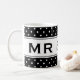 O Sr. e a Sra. engraçados caneca para recentemente weds. Ideal para casamentos, recepções de casamento, ensaios e solteiro ou festa de solteira. Design preto e branco elegante do teste padrão de bolinhas. Texto elegante de Personalizable e cor do fundo. Faça-lhe um senhor e um presente do favor das faltas! Mude a cor do fundo atrás dos pontos para combinar todo o tema do casamento. Toda a cor é rosa possível do IE, vermelho, turquesa, cinza, azul, verde, etc. alaranjados personalizam-no com seu próprio texto e escolhem-nos qualquer pia batismal de elegante a moderno. Design branco do teste padrão pontilhado da polca para o casal de recem casados.