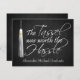 Anúncio de Graduação/Convite, a tassel valeu a pena. Diversão e humildade dizendo sobre todo o trabalho duro, suor, determinação, sacrifício e dedicação que foi para se tornar um sucesso educacional. Estilo de canvas preta escura com uma etiqueta branca e dourada e uma letra cursiva. Guarda personalizada para o formando. Todos os Designs Copyright © www.CustomInvitesOnline.com