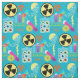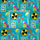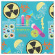 Se você quis saber nunca o que o laboratório do cientista louco olha como, este é ele! Tecido louco do tema do cientista com um fundo dos azul-céu, frascos dos globos oculares, parafusos de relâmpago, aviso e sinais, taças, tubos de ensaio, e lotes tóxicos de cores brilhantes!