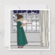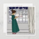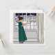 Venha dentro para chá! Uma jovem carregar um bule de chá e copos em uma bandeja em frente a uma janela mostrando uma tempestade de neve lá fora. A menina é adaptada de um anúncio de 1921 para Produits Maxim. Estes cartões poderiam ser usados para cumprimentos, convites, ou notas de agradecimento para o Natal, Ano Novo ou até mesmo uma festa de chá de inverno. Os carimbos correspondentes estão disponíveis.