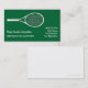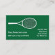 Cartões de visitas dos esportes com símbolo da raquete de tênis e disposição que de cartão de visita do excelente você pode personalizar. Projetado como um modelo de cartão de negócios para um clube de ténis, uma liga, um instrutor, ou uma associação.