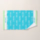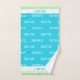 Toalha de mão do suor do jogador de ténis feita no azul de turquesa com uma banda de verde e de branco, em ambas as extremidades. O tênis branco da leitura do teste padrão do texto cobre a área azul, da toalha. O nome feito sob encomenda azul em cada extremidade da toalha, está pronto para personalizar para o senhor mesmo ou como uma grande ideia do presente.
