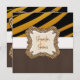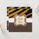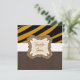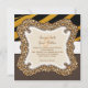Brown, o amarelo, e as listras alaranjadas do impressão e do tigre do leopardo Wedding o convite com acentos brancos e foto do papel marrom com 3D textured o olhar. Um convite temático do casamento do safari africano corajoso do divertimento com os nomes dos noivos na parte dianteira e no texto do convite do casamento na parte de trás do cartão. Design pelos gráficos do © de Elke Clarke licenciados.