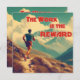 Como corredora, sabe que os resultados da corrida ou RP não são a recompensa. A recompensa está no treinamento, no trabalho. Este design está no estilo de um poster de viagens retrô vintage.