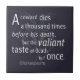 A sabedoria eterno do Júlio César de William Shakespeare ganha vida nesta poderosa citação: "Um covarde morre mil vezes antes da sua morte, mas o corajoso gosto da morte, mas uma vez. Parece-me muito estranho que os homens tenham medo, vendo que a morte, um fim necessário, virá quando chegar." Estas palavras de coragem inspiraram inúmeros soldados, equipes e aventureiros a darem passos ousados em frente. Recordam-nos que a vitória não pode ser alcançada sem bravura, e que viver com medo só conduz a mil pequenas derrotas. Essa mensagem ressoa além do seu contexto original, ecoando os ensinamentos de Jesus: "Quem ama sua vida a perder, e quem odeia sua vida neste mundo a manterá para a vida eterna." Coragem verdadeira significa valorizar o que é certo sobre o conforto pessoal, e encontrar a força para agir de forma altruísta e ousada perante o medo. Seja como inspiração para si mesmo ou como encorajamento para alguém com quem se importa, que esta citação sirva como um lembrete para viver corajosamente, escolher a coragem sobre o medo, e abraçar as maiores recompensas que vêm de fazer o que é certo.