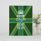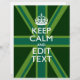 Seu personalizado "Fique Calmo" dizendo em uma vibrante decoração de união verde. Um estilo "Manter Calmo" personalizado dizendo em um presente gentil. Humorístico ou caprichoso experimente suas palavras criativas em duas linhas editáveis de texto. Lembre-se de usar letras CAPITAL para obter melhores resultados. Use o link "Perguntar a este Designer" para entrar em contato conosco com suas solicitações especiais de design ou para obter assistência com suas necessidades de personalização.