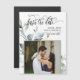 Isto salva a data em que o cartão magnético apresenta elegantes folhas de folhagem verde-aquática e belas caligrafias e simples fontes de tipografia serif com um quadro fotográfico quadrado em fundo branco para um olhar limpo minimalista e moderno, que é uma bela maneira de informar sobre seu próximo casamento ou elopemento. Apenas personalize o texto e adicione um toque pessoal com uma bela foto do casal. Note-se que a elegante caligrafia dos termos "Salvar a data" e "convite formal para seguir", juntamente com a folha verde de cor-d-água, o eucalipto de folhas e outros trabalho de arte gráficos e elementos não podem ser editados, suprimidos ou movidos. Eles estão consertados.