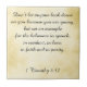 Um símbolo religioso, este verso da bíblia "seja características do azulejo de um exemplo" um fundo do pergaminho do ouro com uma escritura de 1 4:12 de Timothy escrito no preto. "Não deixe qualquer um olhar para baixo em você porque você é novo, mas ajustar um exemplo para os crentes no discurso, na conduta, no amor, na fé e na pureza".