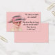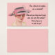 Isto aprende como estacionar características do cartão uma imagem do vintage de uma mulher elegante, em um fundo cor-de-rosa. O texto lê, "você, caro senhor ou a senhora, é um meliante! Quando você aprendeu como estacionar, quando os carros foram inventados primeiramente? As lições do estacionamento são para que você!"