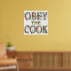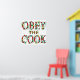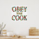 Obedeça a comida engraçada da cozinha Cook dizendo decorada com luzes coloridas de Natal em vermelho, verde, amarelo e azul. Você deve obedecer ao cozinheiro se quiser comer seu janto. Por MomsRetro.