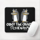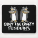 Obedeça os pinguins loucos. Provérbio engraçado com os 2 irritados e os pinguins de vista loucos.
