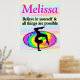 Acredite em si mesmo e todas as coisas são possíveis. O seu ginasta de alto nível fará retornos e sacudir para este poster de ginástica personalizado bonito em www.zazzle.com/mysportsstar. Esta encantadora Gymnast encanta e brilha nas suas rotinas de ginástica. Este poster de ginástica exclusivo e personalizado é o presente perfeito para o aniversário, feriados ou qualquer ocasião. Sua dedicada e determinada Gymnast será encorajada e adorará ter essa poster no quarto dela.