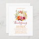 Janta de Ação de Graças, convite público para o documento orçamental. Flores caindo alegres e abóbora branca em motif de aquarela com folhas de outono e texto de guião em cores festivas. Clique em Personalizar para alterar a cor do texto ou do fundo.