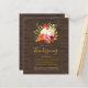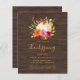Convite jante de Ação de Graças para o documento orçamental. Flores de queda alegres e abóbora branca em motif de aquarela com folhas de outono e texto de roteiro sobre fundo de madeiras rústicas. Clique em Personalizar para alterar a cor do texto ou do fundo.