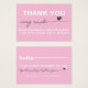 Um agradecimento elegante por oferecer suporte a pequenos cartões de visitas Cartões de nota de apreciação do cliente Script rosa com coração, que podem ser facilmente atualizados com o logotipo e as informações da sua empresa. Se você precisar de ajuda para personalizar este produto, entre em contato comigo usando o botão de mensagem e terei todo o prazer em ajudá-lo.
