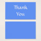 Obrigado, escrito em uma bela fonte de script, em branco e uma boa cor azul.