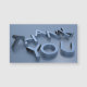 Cartões de tamanho comercial que dizem "Obrigado" em uma matiz azul-prateada 3D.