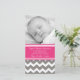 Obrigado do chá de fraldas você cartões com fotos no rosa quente fúcsia brilhante elegante e moderno, em cinzas de carvão vegetal escuras e em branco com ziguezagues retros da viga do divertimento listra o teste padrão. Uma maneira perfeita de agradecer a amigos e a família para presentes do chá de fraldas e de compartilhar de suas fotos do bebê. Disponível em muitos produto de harmonização para seu chá.